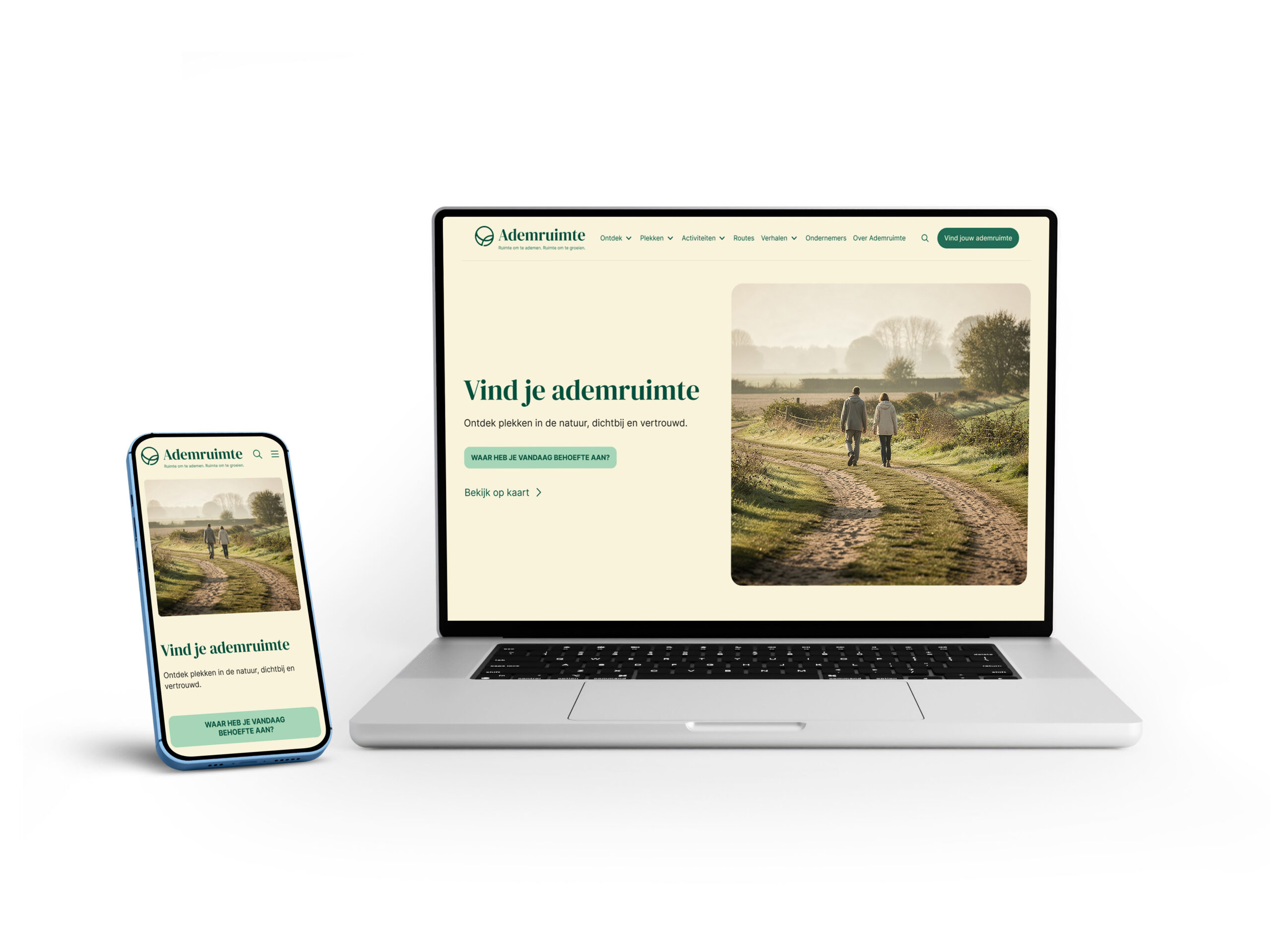 Conceptueel en visueel voorstel voor een platform rond natuur, gezondheid en ruimte om te herstellen en te groeien.