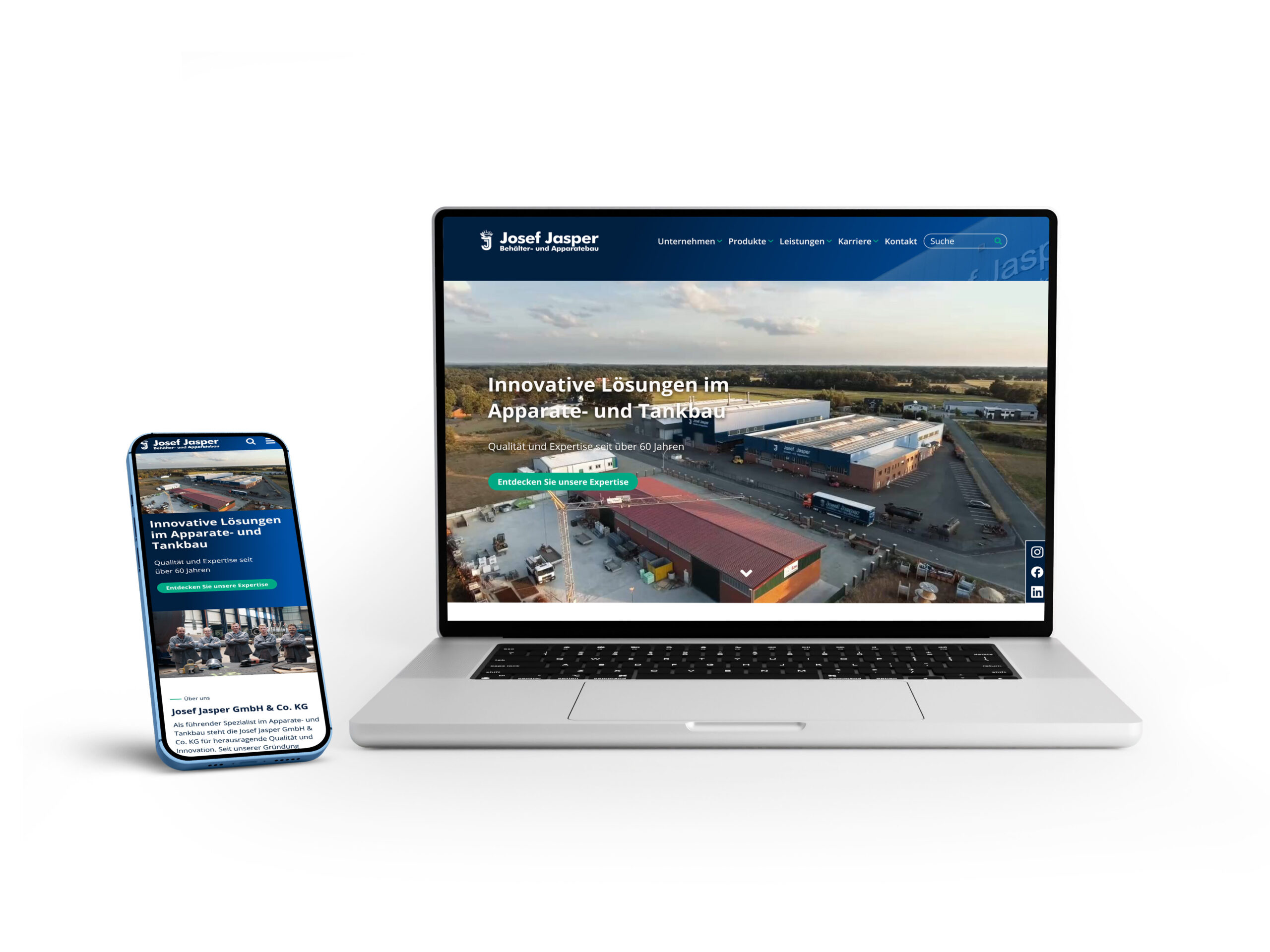 Zakelijke website voor een specialist in apparaten- en tankbouw, met duidelijke structuur en een betrouwbare, professionele uitstraling.