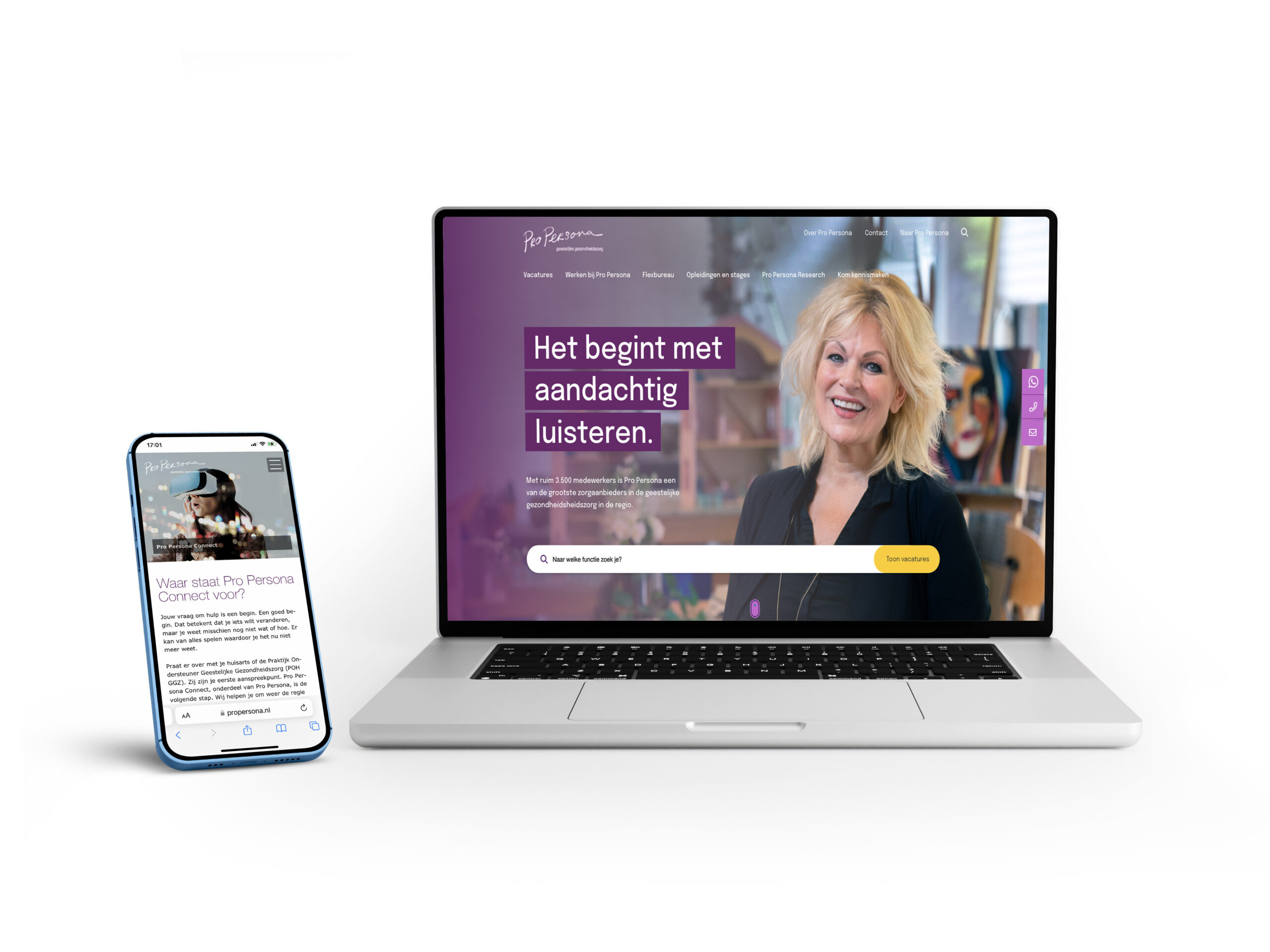Website en digitale uitstraling voor een zorgorganisatie, met focus op menselijkheid, herkenbaarheid en samenhang.